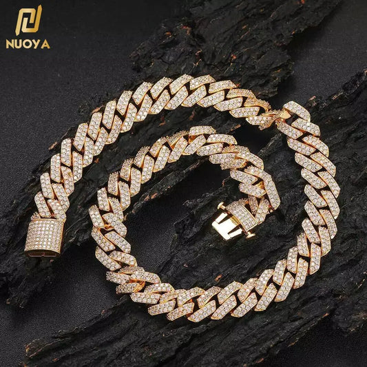 Cadena cubana bañada en oro con hielo para hombres y mujeres