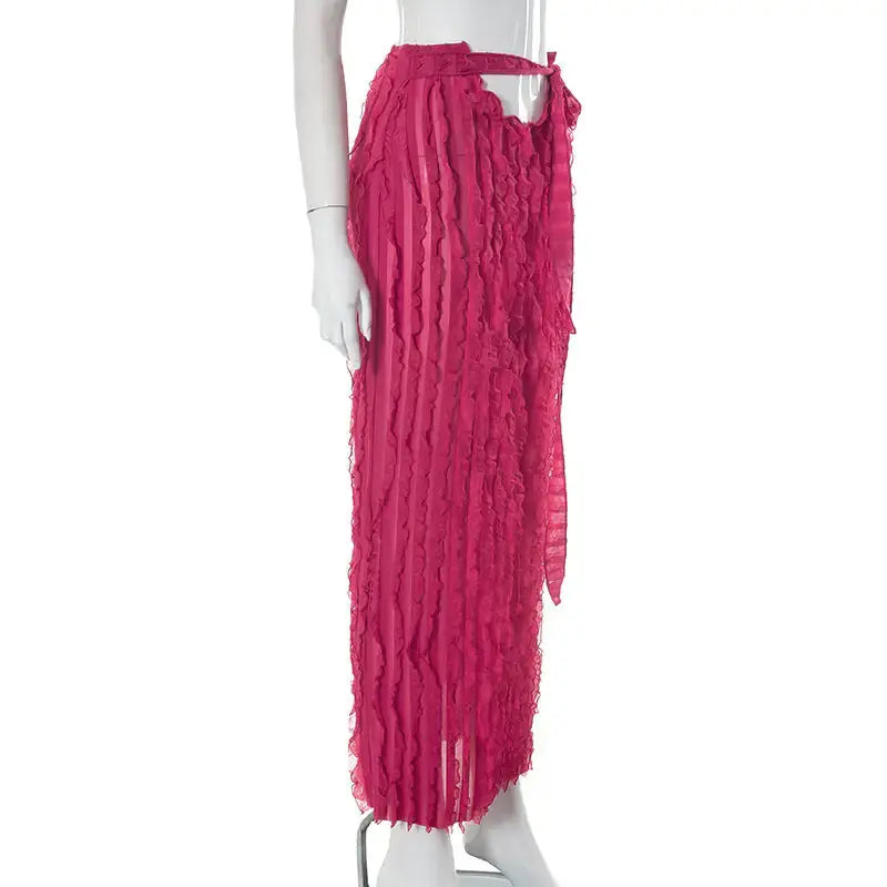Girls Night Ruffle Tie Waist Midi Skirt Vivareflex Online