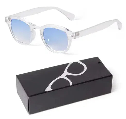 Lentes azules degradados: los lentes azules degradados brindan un aspecto elegante y contemporáneo y, al mismo tiempo, ofrecen una excelente protección contra los rayos UV. El sutil degradado de azul oscuro a azul claro no solo mejora su visión, sino que también agrega un toque de elegancia a su atuendo.