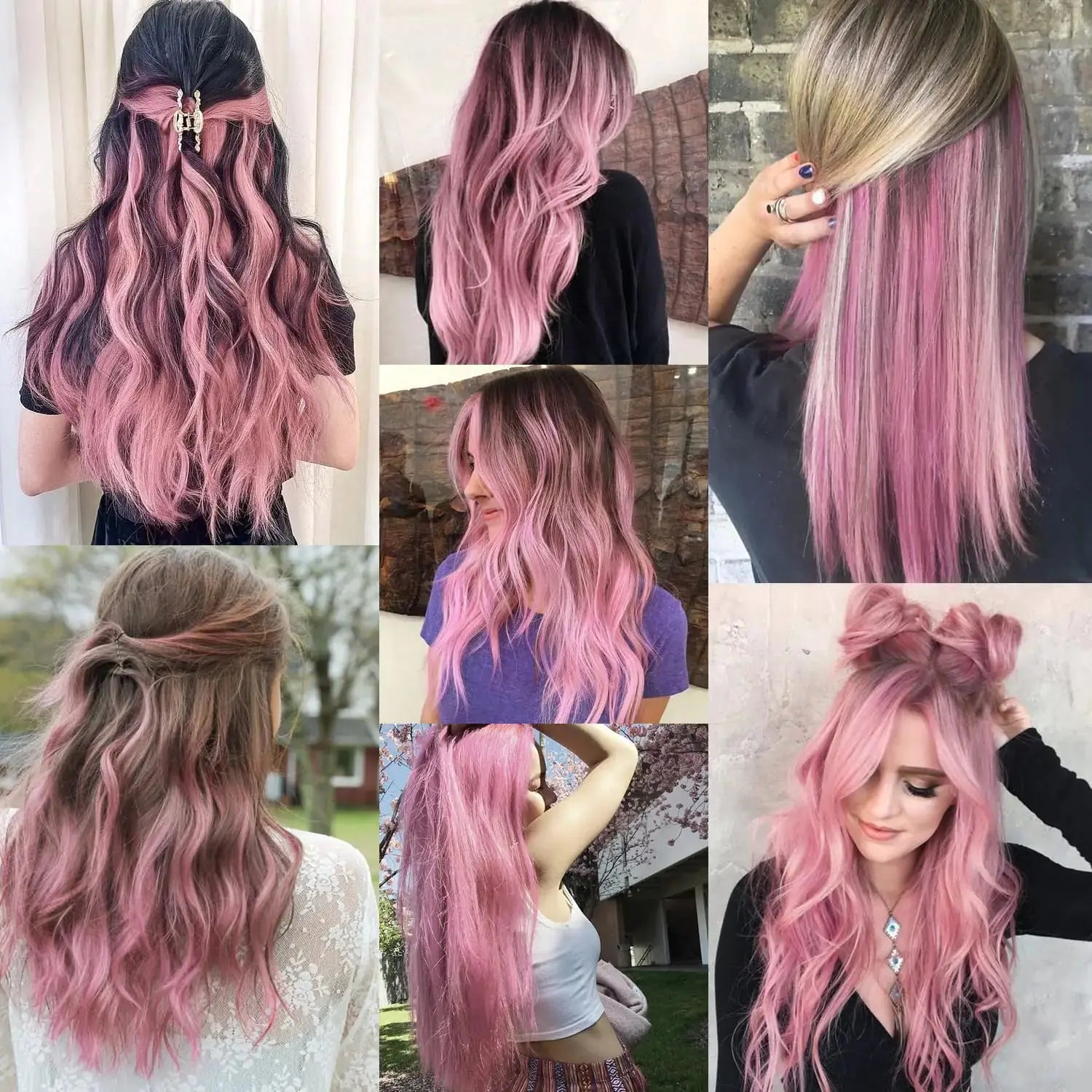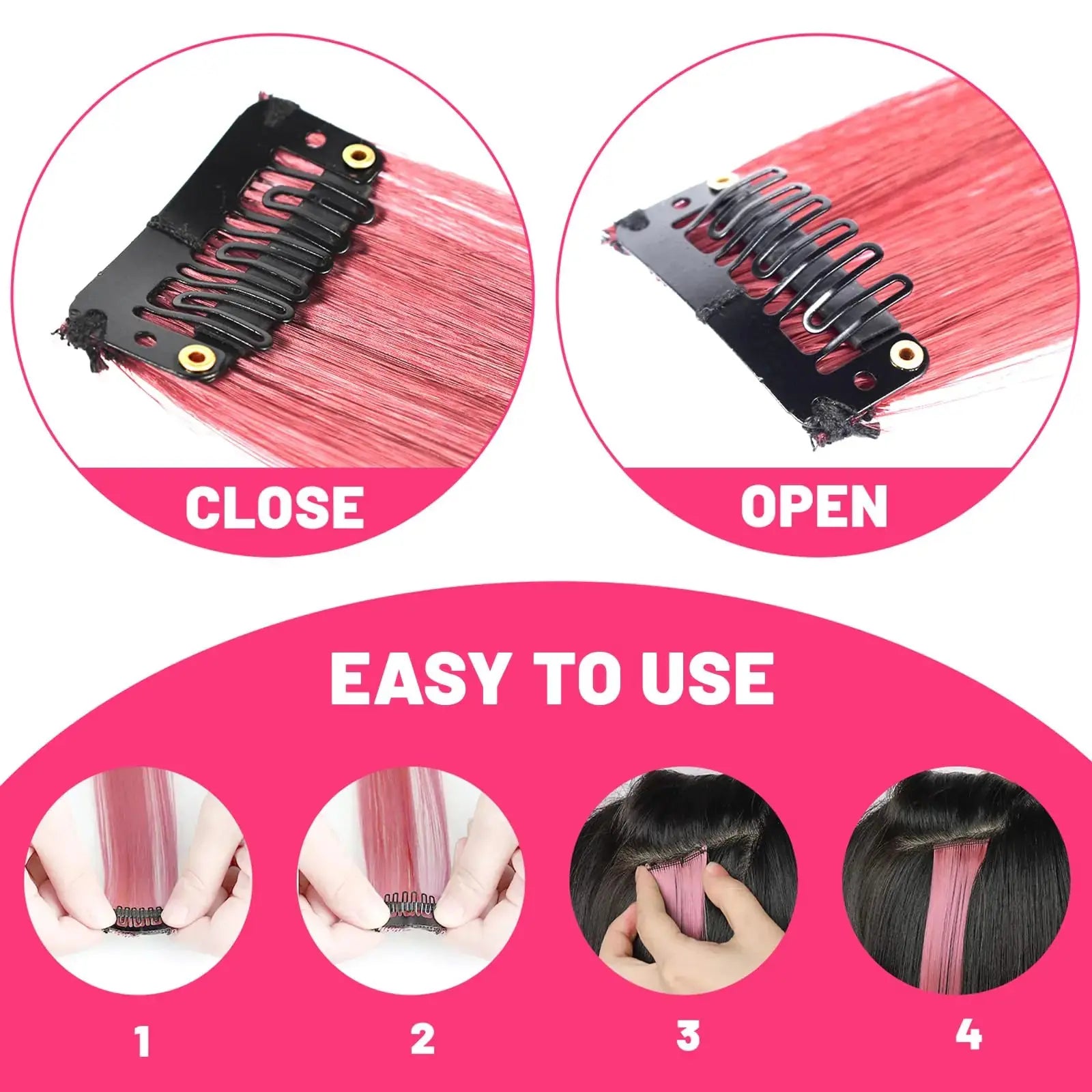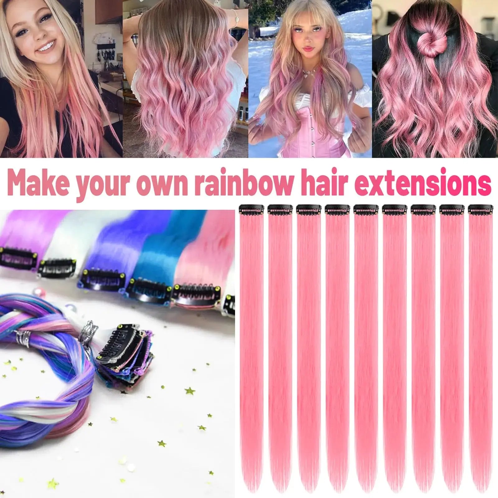 Add a pop of vibrant color to your look with these 22-inch straight pink hair extensions! Perfect for parties, events, or everyday fun, these easy-to-use clip-in synthetic hair extensions are a hit with kids and women alike. Transform your hairstyle in seconds and stand out effortlessly!