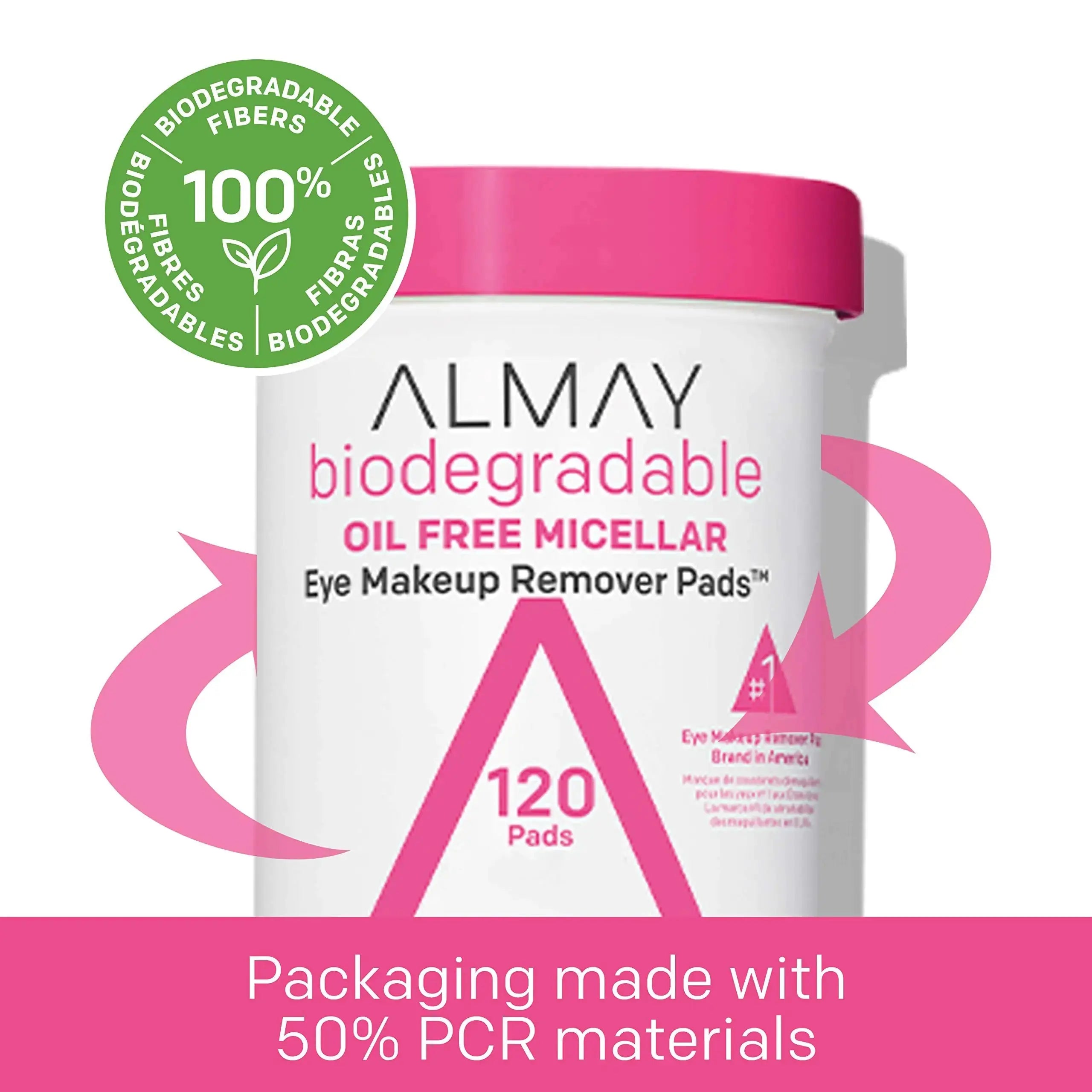 Almay Biodegradable Micellar Eye Makeup Remover Pads - 120 Count (Pack of 2) - Hypoallergenic & Fragrance-Free