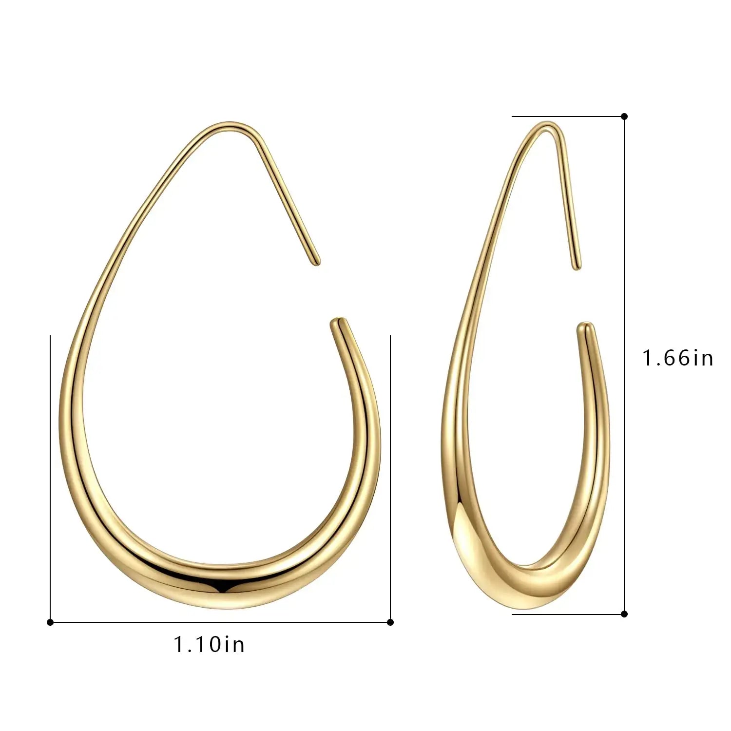Elegant Teardrop Hoop Earrings – 14k Gold/White Gold Plated, Polished Oval Pull-Through Design - Vivareflex Online