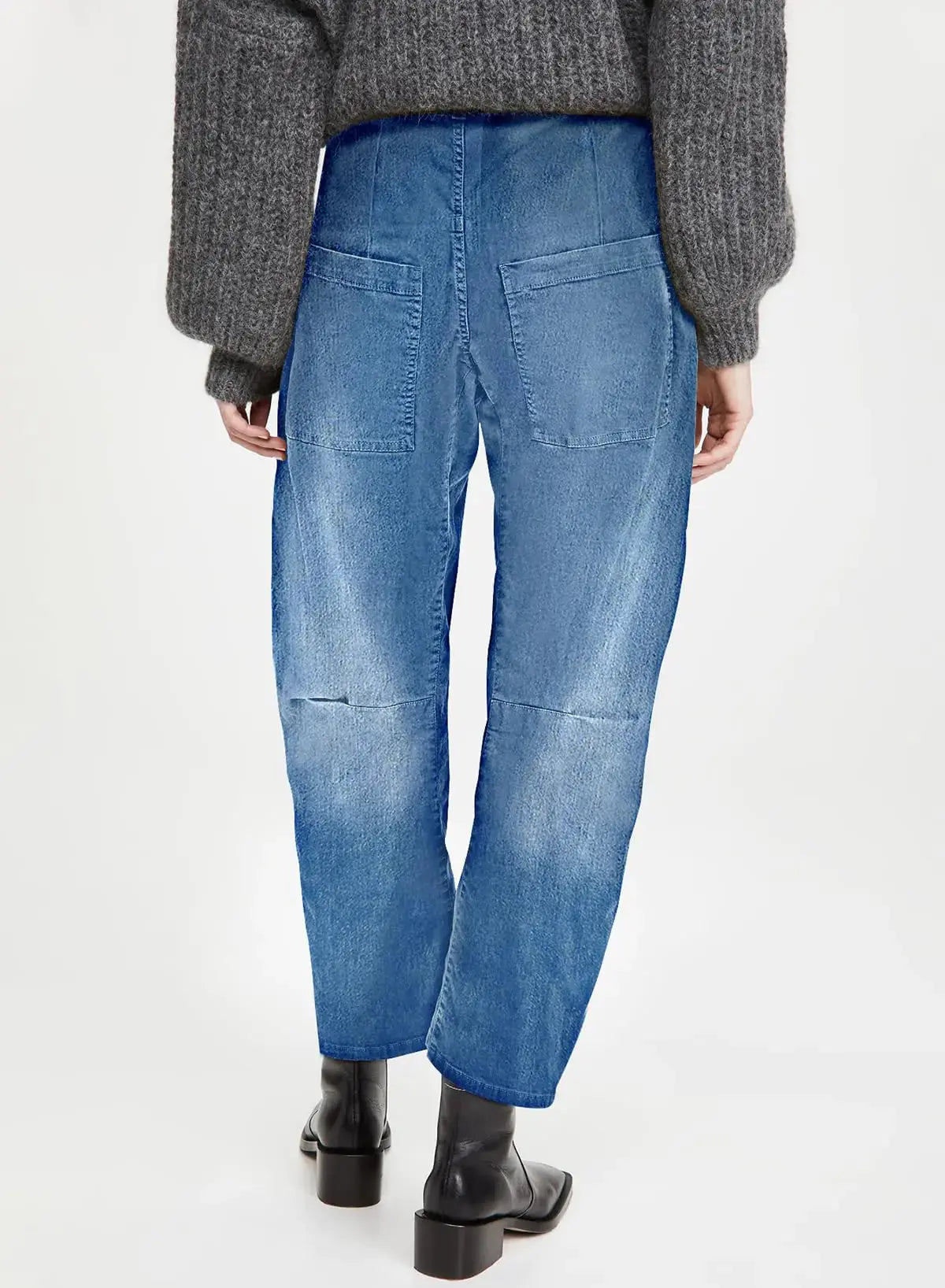EVALESS Womens Baggy Barrel Jeans High Waisted Wide Leg Boyfriend Denim Ankle Pants Ashleigh Blue 14 - Vivareflex Online