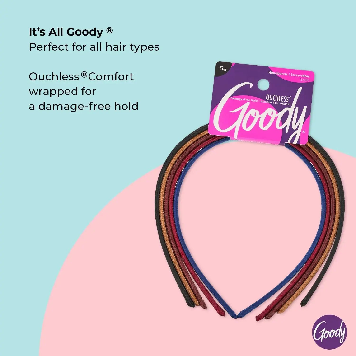 GOODY Ouchless Classic Headband - 5 Count, Assorted Colors (Pack of 2) – Pain-Free Hair Accessories for All Hair Types