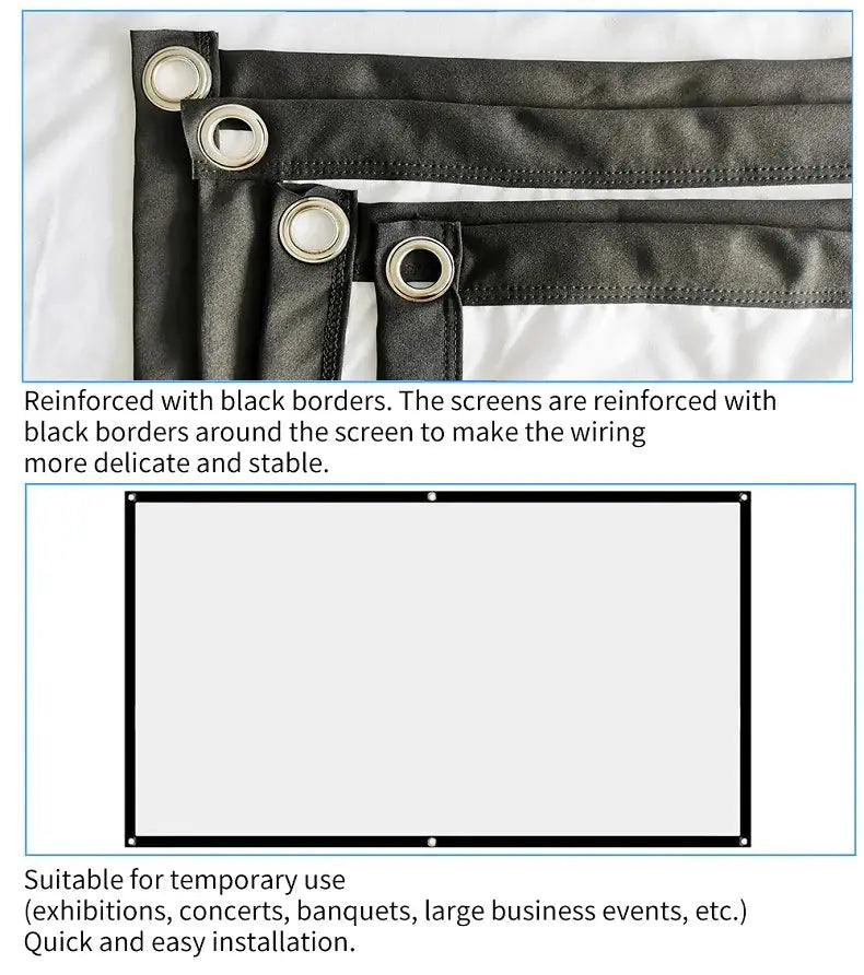 Bring the big screen to your home or office with our Portable Projector Curtain, designed to transform any space into a cinema-quality viewing environment. Whether you're hosting a movie night with friends or giving a presentation at work, this versatile curtain provides the perfect backdrop for immersive entertainment and professional presentations.