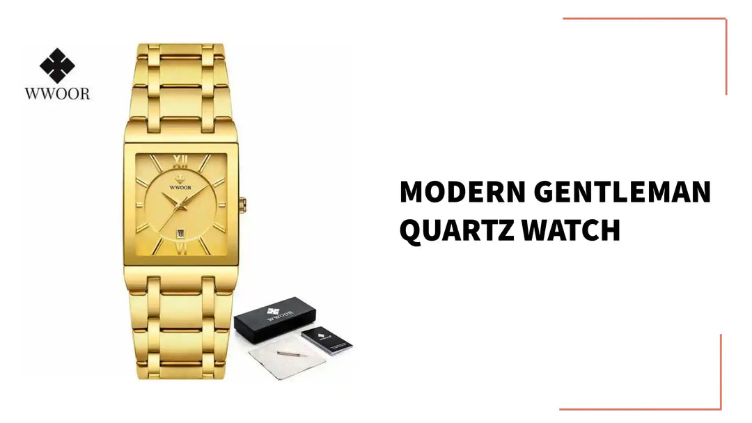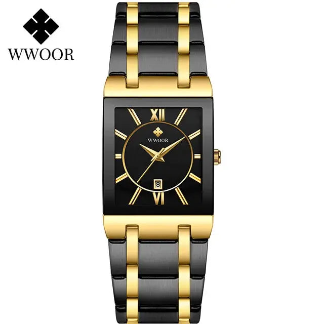Elevate your wrist game with our WWOOR Quartz Stainless Steel Watch, meticulously crafted with precision and sophistication. Featuring a square chronograph design and a striking gold color, this watch exudes confidence and refinement, making it the perfect accessory for any occasion.