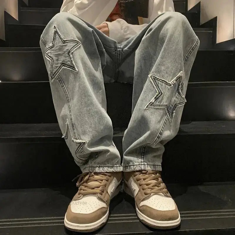 Embrace the spirit of the Y2K era and elevate your street style game with our Star Embroidery Straight Casual Men Jeans. Whether you're hitting the city streets or chilling with friends, these jeans are your ticket to effortlessly cool fashion.