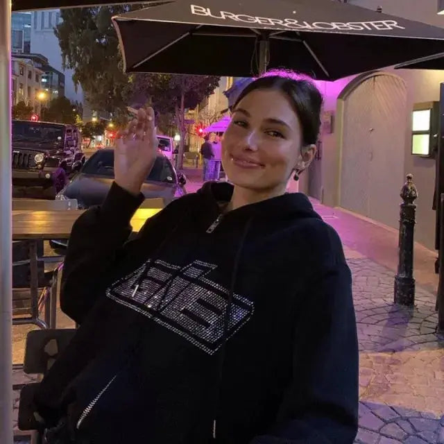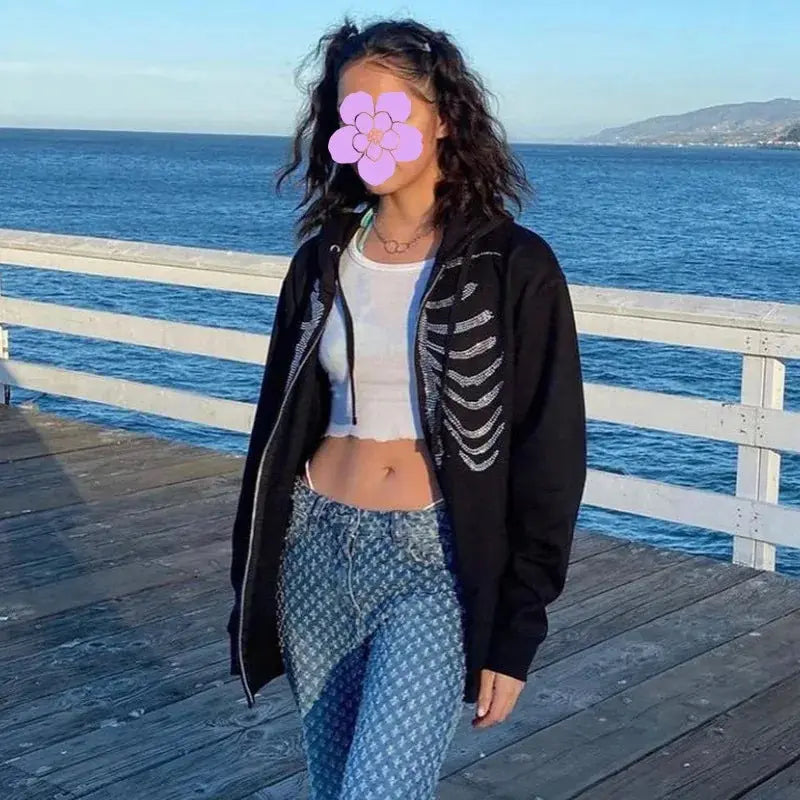 Invest in quality with our Women Gothic Black Zip Up Hoodie, meticulously crafted from durable materials to ensure long-lasting wear. The high-quality stitching and attention to detail make this hoodie a reliable choice for everyday use. The zip-up closure and adjustable drawstring hood provide added convenience and functionality, allowing you to customize your fit and stay comfortable throughout the day. Whether you're lounging at home or out exploring the city, this hoodie promises comfort, style, and durability in one.