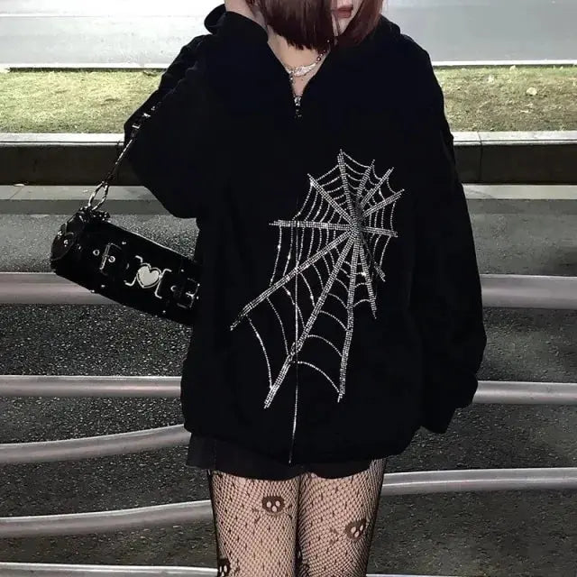 Add a touch of edge to your outfit with our Women Gothic Black Zip Up Hoodie. Featuring a modern and versatile design, this hoodie pairs effortlessly with jeans, leggings, or skirts, making it suitable for various occasions. The Gothic detailing on the sleeves and hood adds a unique flair, making you feel confident and stylish no matter the setting. Perfect for layering during cooler weather or wearing solo on mild days, this hoodie combines fashion-forward aesthetics with practicality.